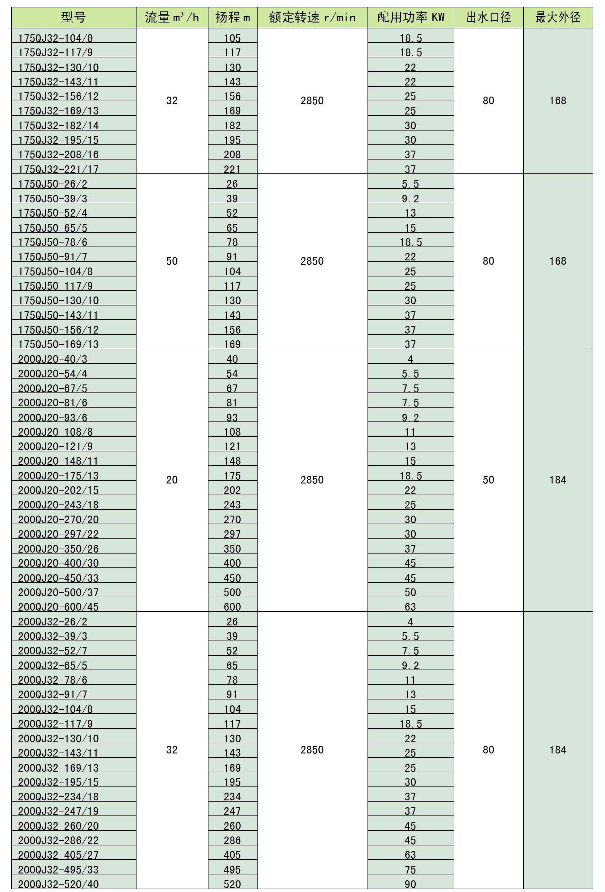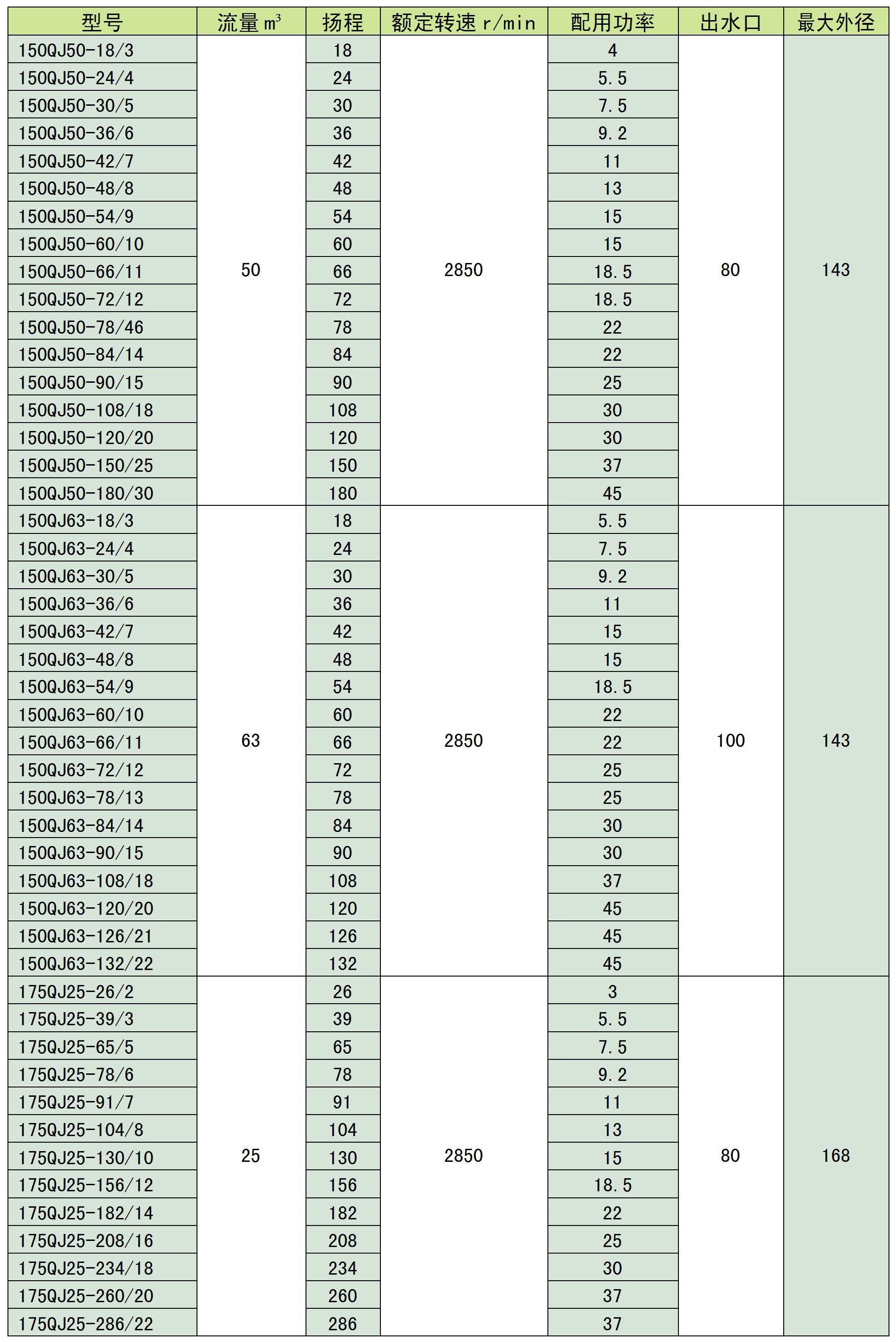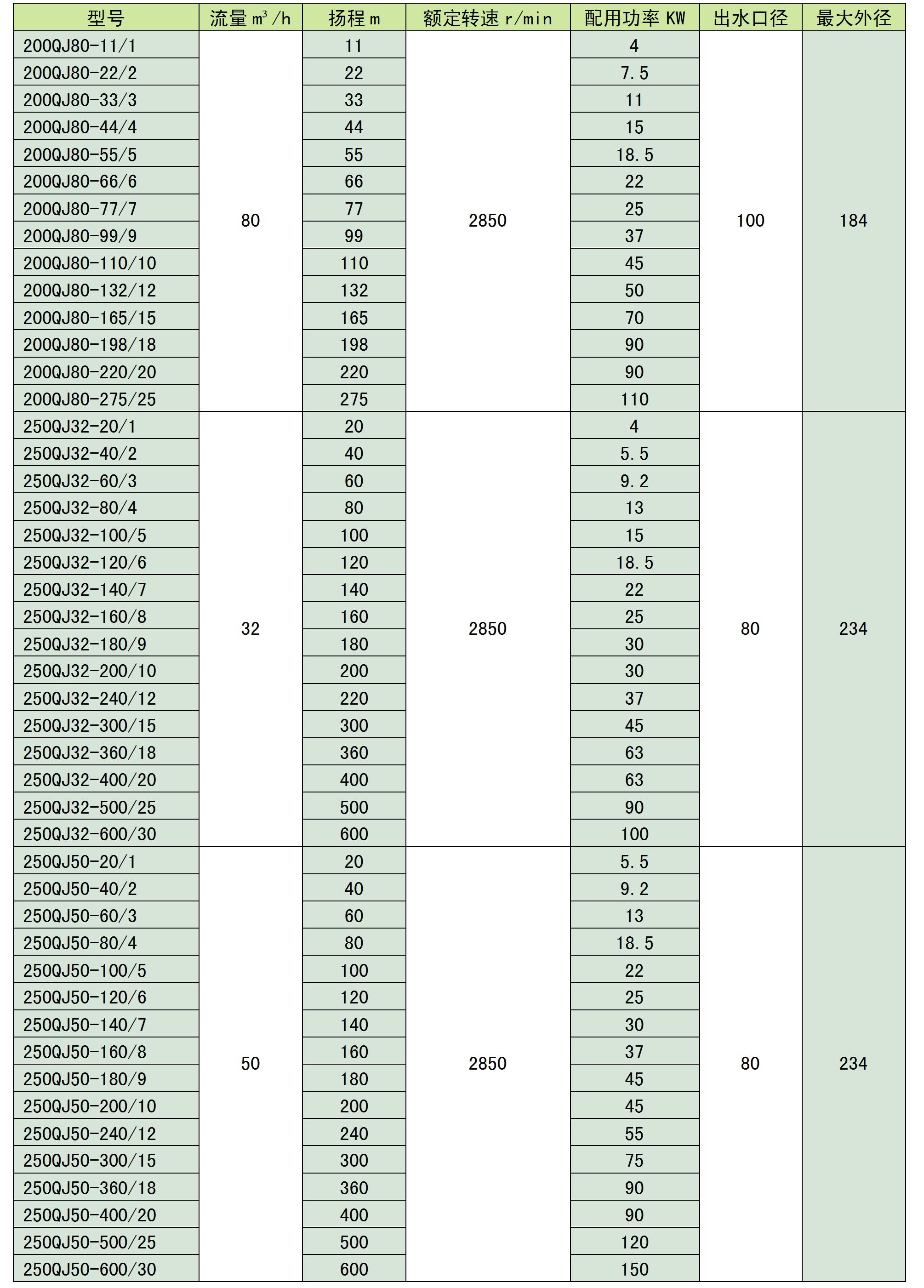 不銹鋼潛水泵型號(hào)參數(shù)